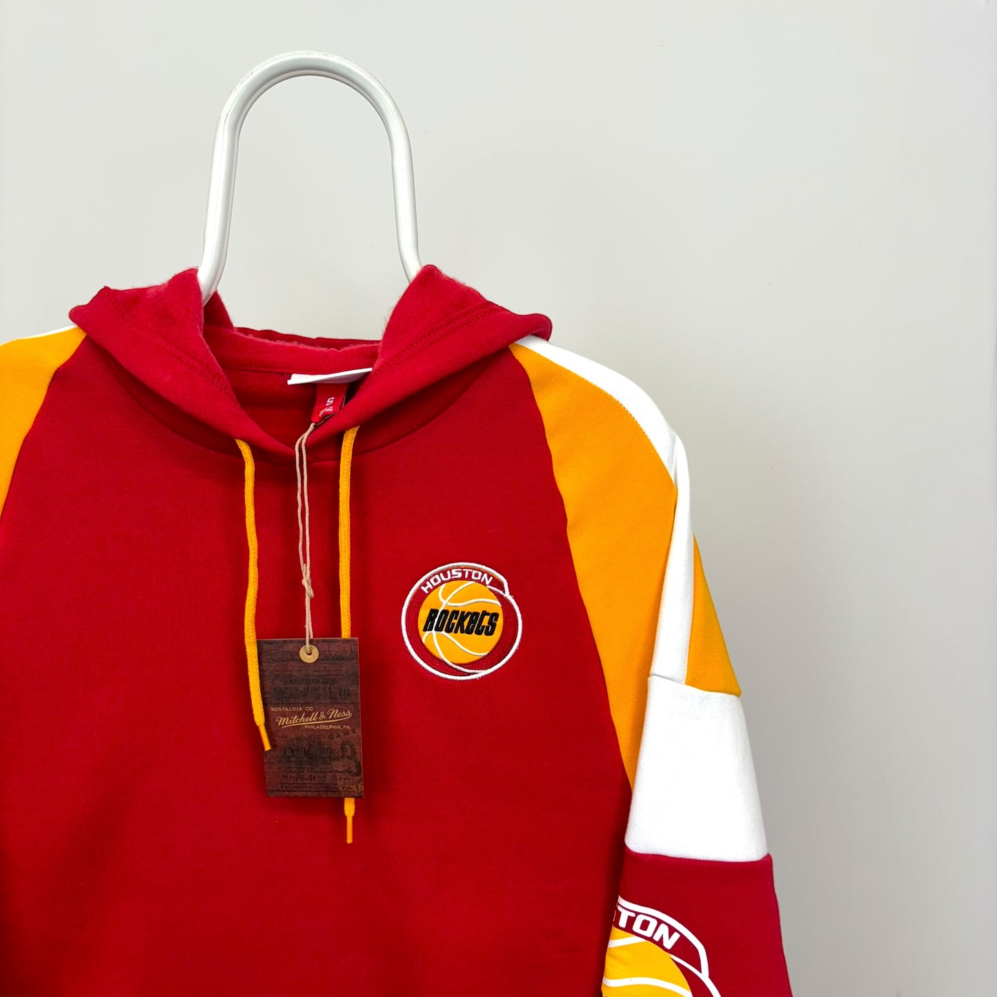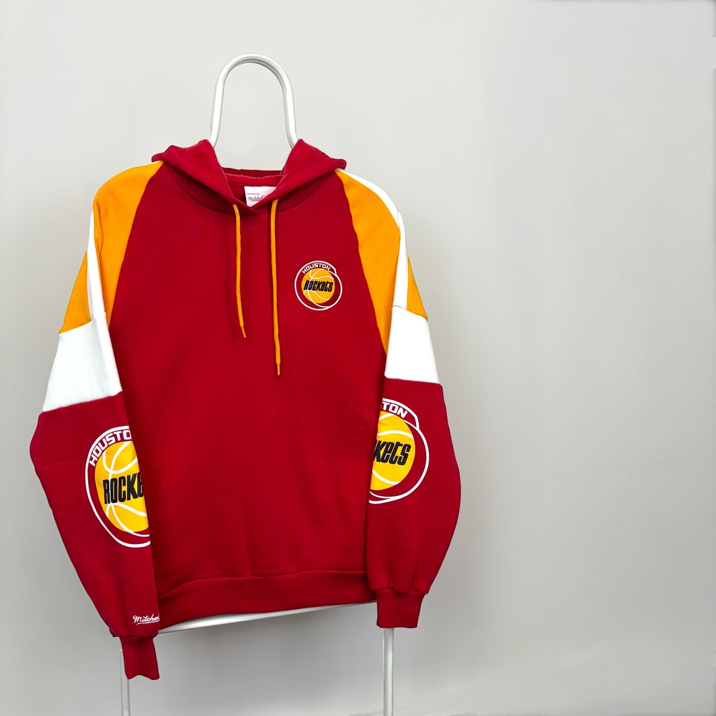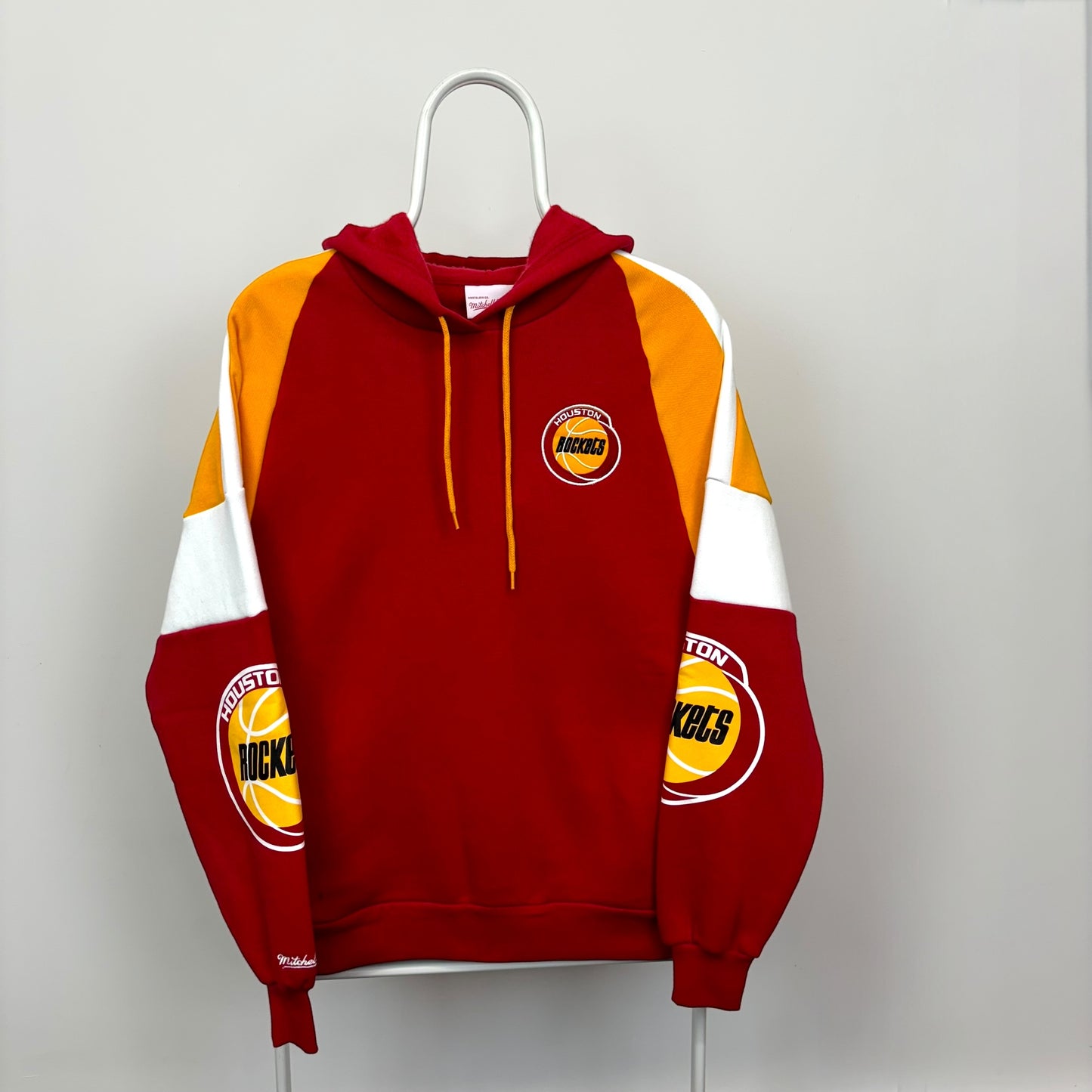 Experience the legacy of Rockets basketball with this authentic Mitchell & Ness Instant Replay Hoodie. Crafted from premium materials, this hoodie offers both comfort and style. The classic color blocking, combined with the iconic embroidered logo and printed sleeve graphics, pays homage to the team's rich history. Mitchell & Ness delivers a premium product that will keep you warm and looking your best, both on and off the court.