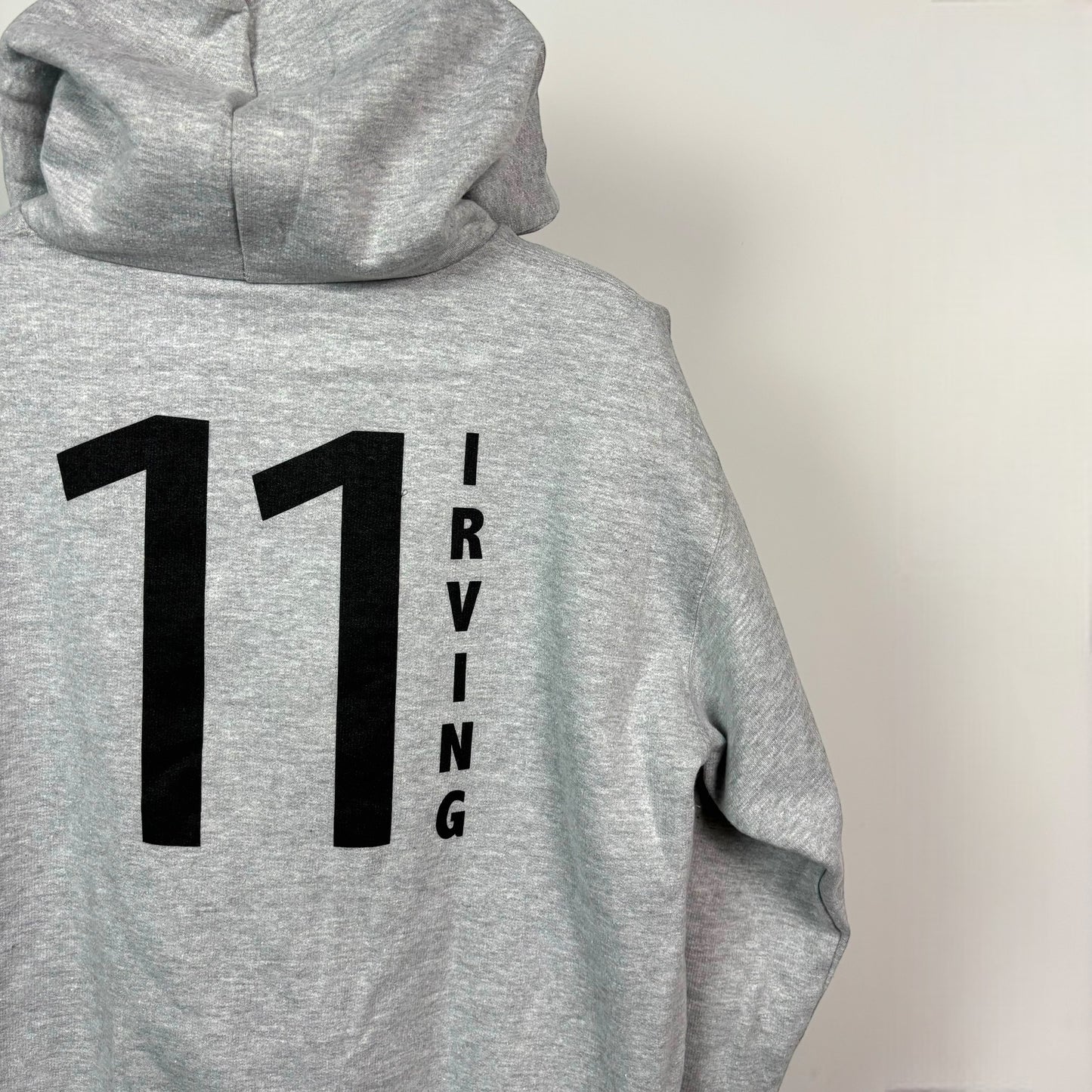 Embrace the Nets Spirit: Show your unwavering support for the Brooklyn Nets with this stylish Outerstuff hoodie. The grey base is accented by the iconic Nets logo prominently displayed on the front, while the number "11" is printed on the back to honor Kyrie Irving.
