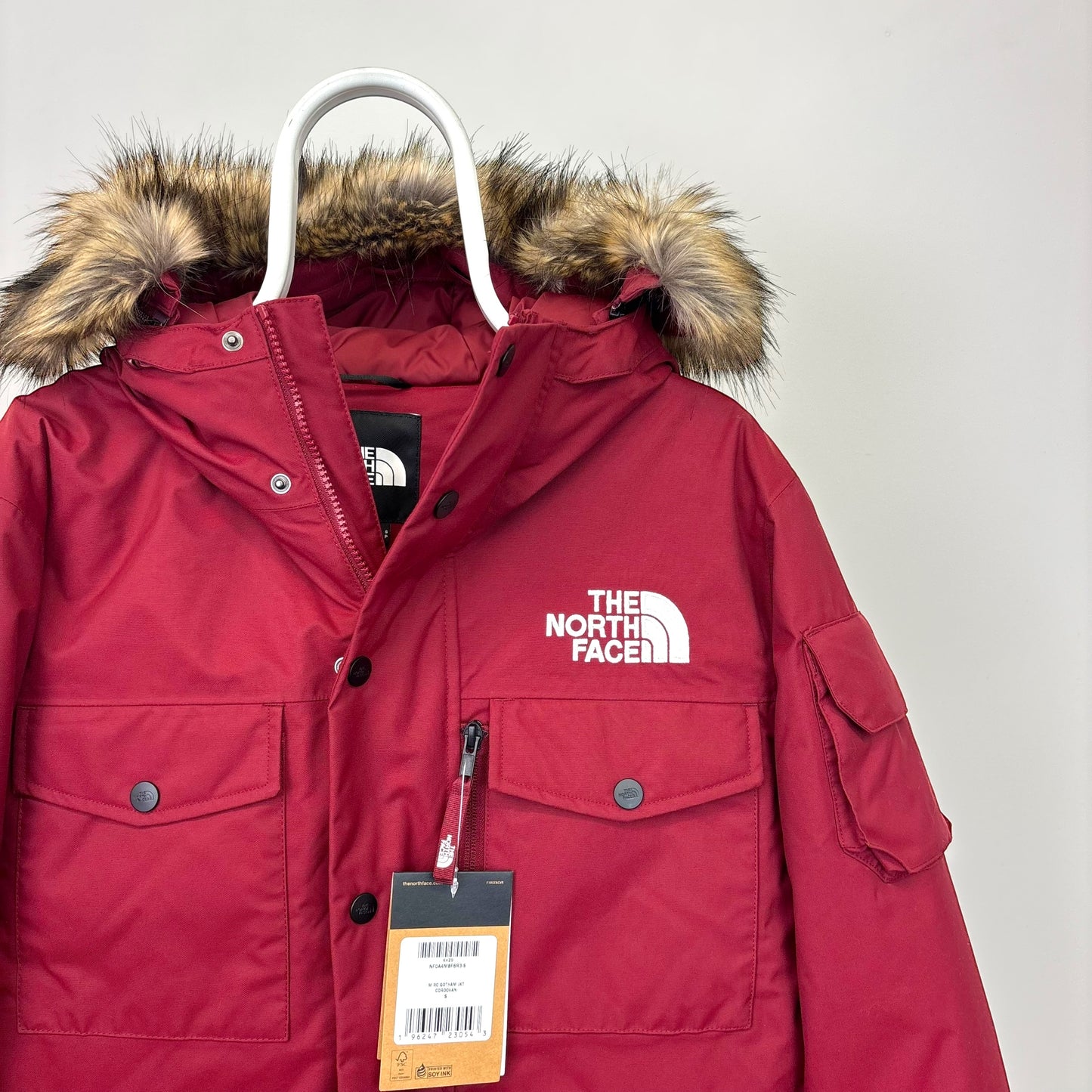 Conquer winter's chill with the iconic The North Face Gotham Jacket, designed to offer robust warmth and metropolitan style. This essential jacket, in a rich and distinctive Cordovan Red, stands out with its cozy down insulation and a practical, detachable faux fur hood trim. It's the perfect blend of rugged functionality and urban sophistication, ensuring you stay warm and look sharp during your daily adventures.